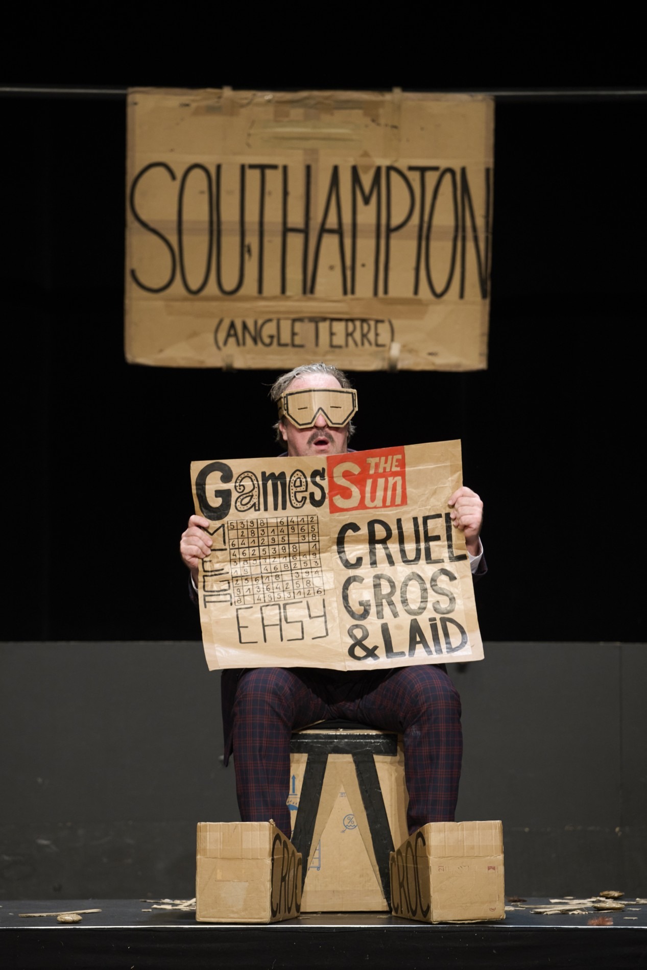 Plébicité depuis sa création en 2020, le spectacle est récompensé en 2022 du MOLIÈRE du meilleur spectacle de théâtre public.Il quitte les plaines du Grand Nord, maudit par une sirène pêchée par accident. Il s’évade en patins, à trottinette, en avion cartonné. Il découvre l’Écosse, repart vers le sud à dos de mulet, assassine quelques cornemuseurs au passage, cherche l’amour, toujours.Mais l’acteur en costume trois pièces reste assis, c’est la folie du spectacle. Son acolyte en maillot de bain s’agite autour de lui avec des centaines de morceaux de carton où sont inscrits les noms des pays, accessoires ou bestioles rencontrées.