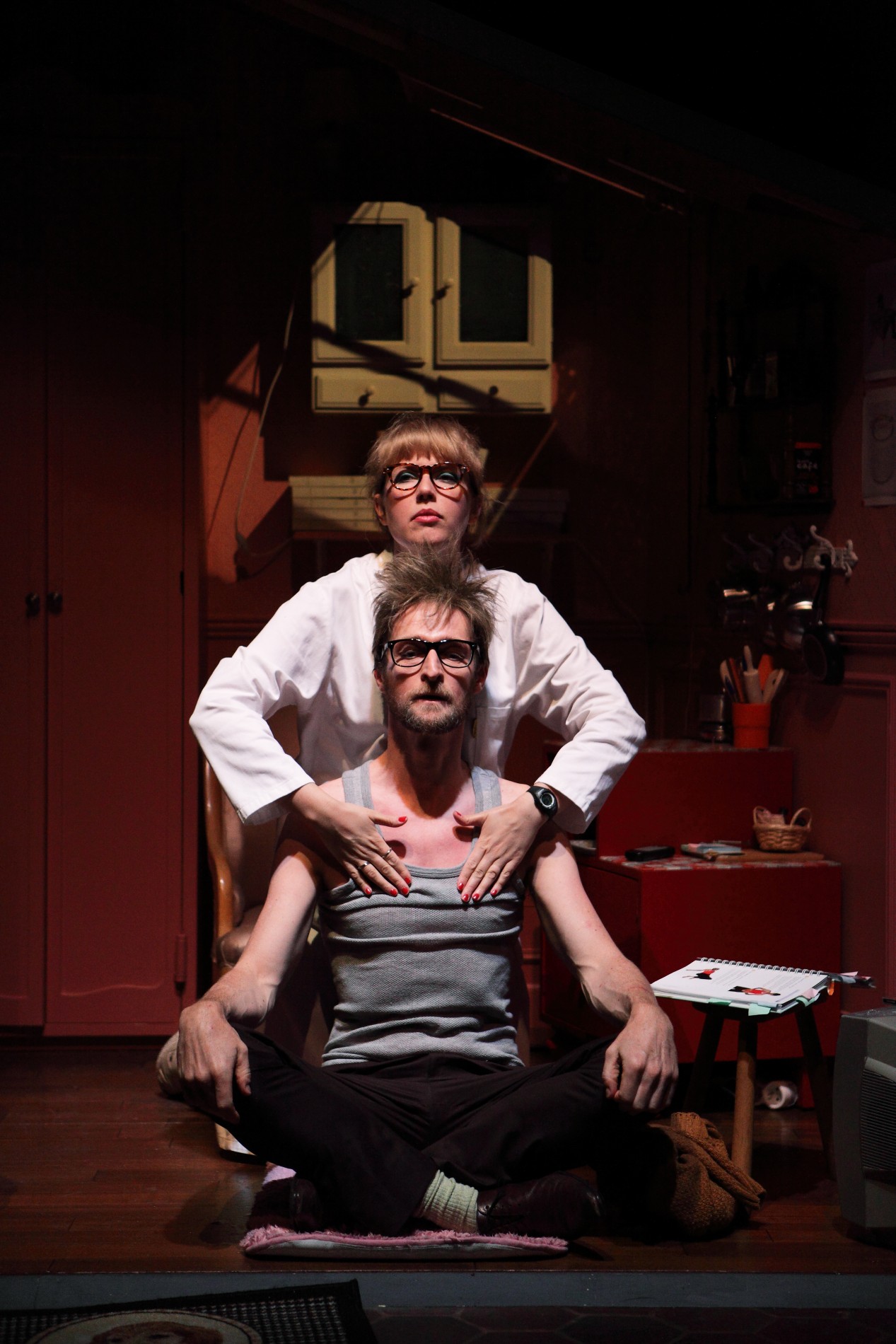L’histoire serait joliment romantique si ces trois hurluberlus n’avaient comme particularité de tout rater. Absolument tout. Les catastrophes s’enchaînent, les gags pleuvent, tandis que ces trois fantoches s’accrochent à tout ce qui ressemble à l’amour, à la vie ou à l’espoir. Grâce à une machinerie digne du grand guignol, les objets volent, les corps valdinguent et tout l’étage est chahuté par divers incendies, fuites, tempêtes et autres sinistres délirants qui finissent en un chaos étourdissant. Attachants au possible, risibles et irrésistibles, nos trois anti-héros nous hallucinent autant qu’ils nous font pleurer… de rire.